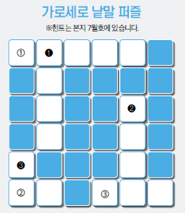 아래 퀴즈를 풀어 낱말 퍼즐의 빈칸을 채워주세요.