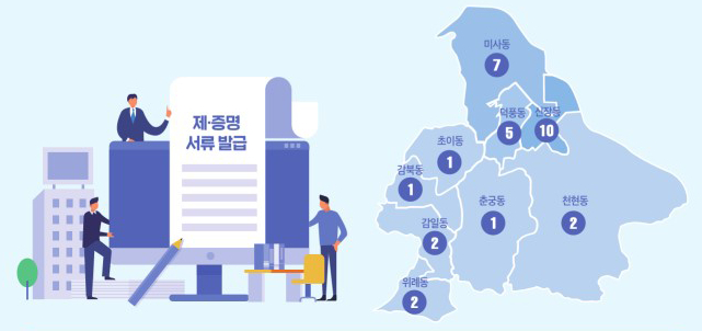 •등기부등본 및 가족관계증명서(제적부)는 시청 및 동 행정복지센터 내 설치 기기에서 가능합니다.
